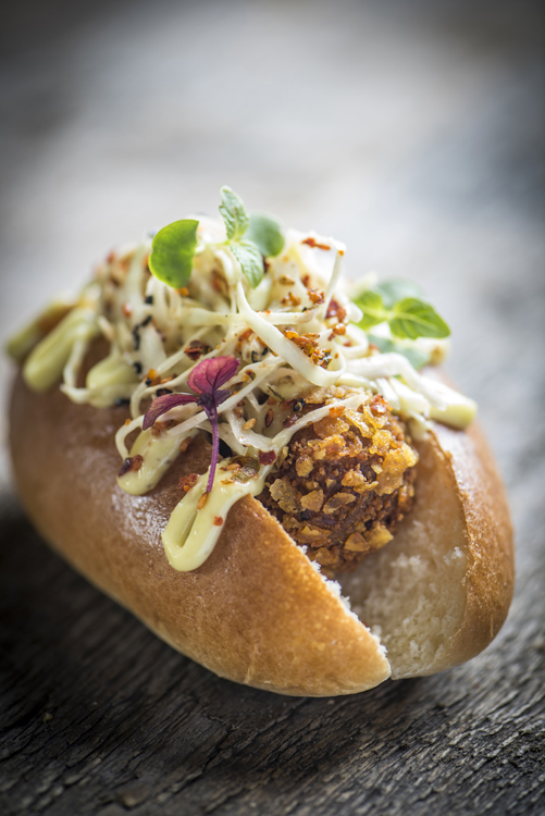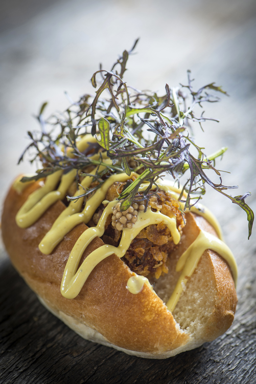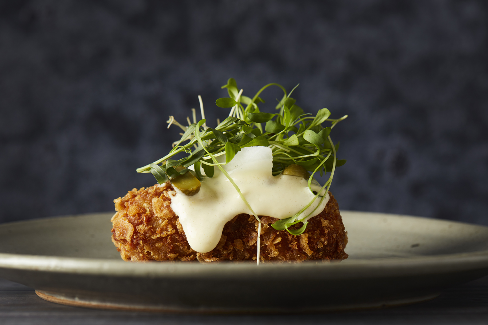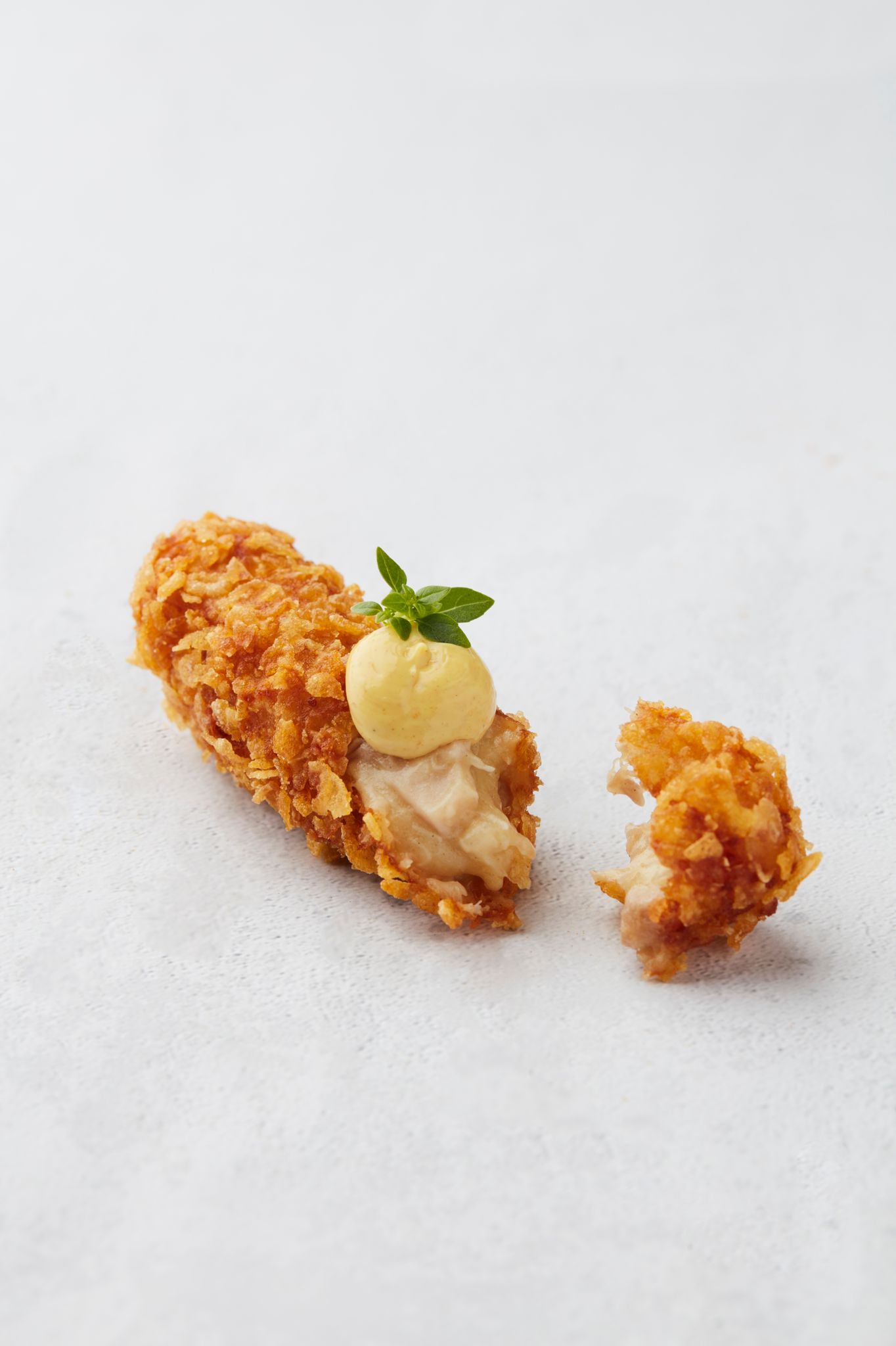 The Crispy Chicken is made slow-cooked, free-range chicken thighs and filet with a dash of Japanese dashi for that umami flavour! Ultimately, all the blend croquettes are rolled into cornflakes, for a better flavour and crunch.