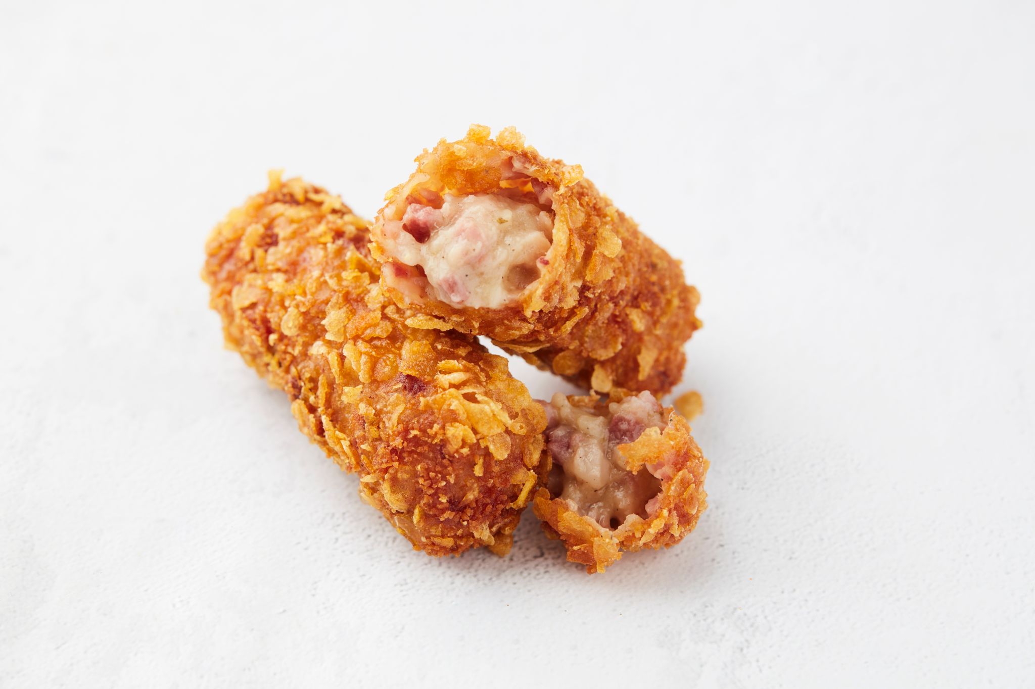 resulting in a very tender, soft structure. During the preparation we add fat from Rubia Gallega for a nice, deep, unique taste. Full flavour with the characteristic cornflakes outside crunch!