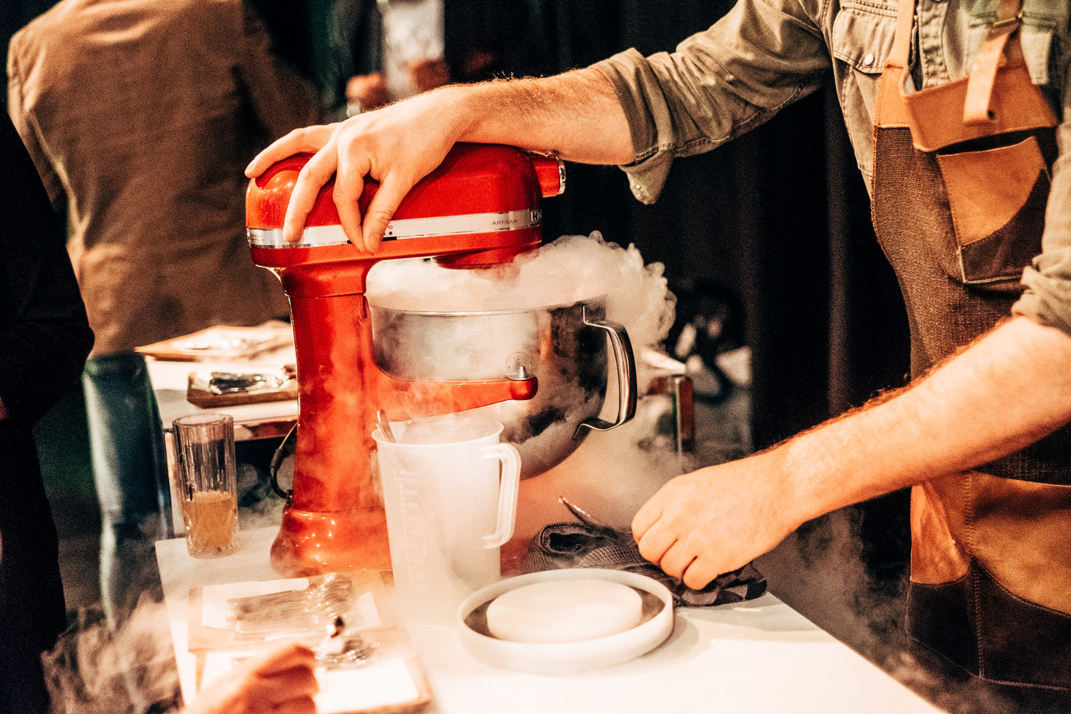 For the launch of the Jaguar I-pace, we created a dish which contained all the key values of the new car: quinoa cucumber (green transmission and performance), seabass, champagne (luxury), liquid nitrogen meringue soy & sansho pepper (futuristic & electric)